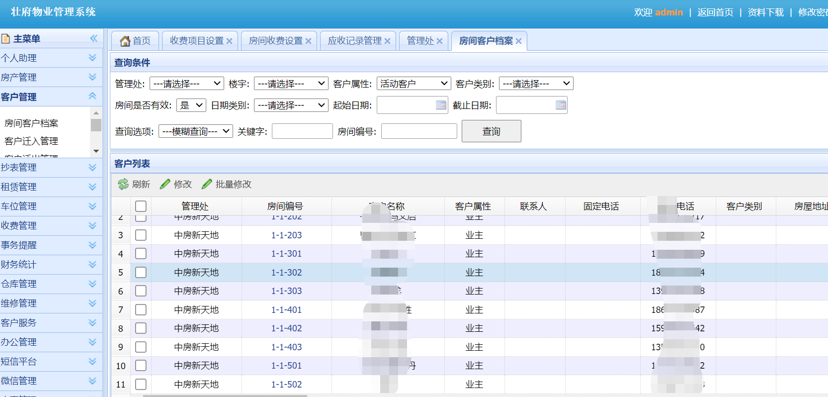 南宁中房新天地小区物业收费系统